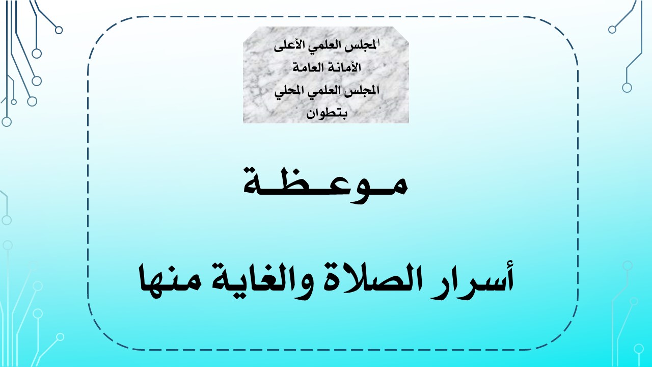 وبعد، يقدم فضيلة الأستاذ عبد السلام الخشين الإمام المرشد بالمجلس العلمي المحلي بتطوان، موعظة دينية بعنوان:
