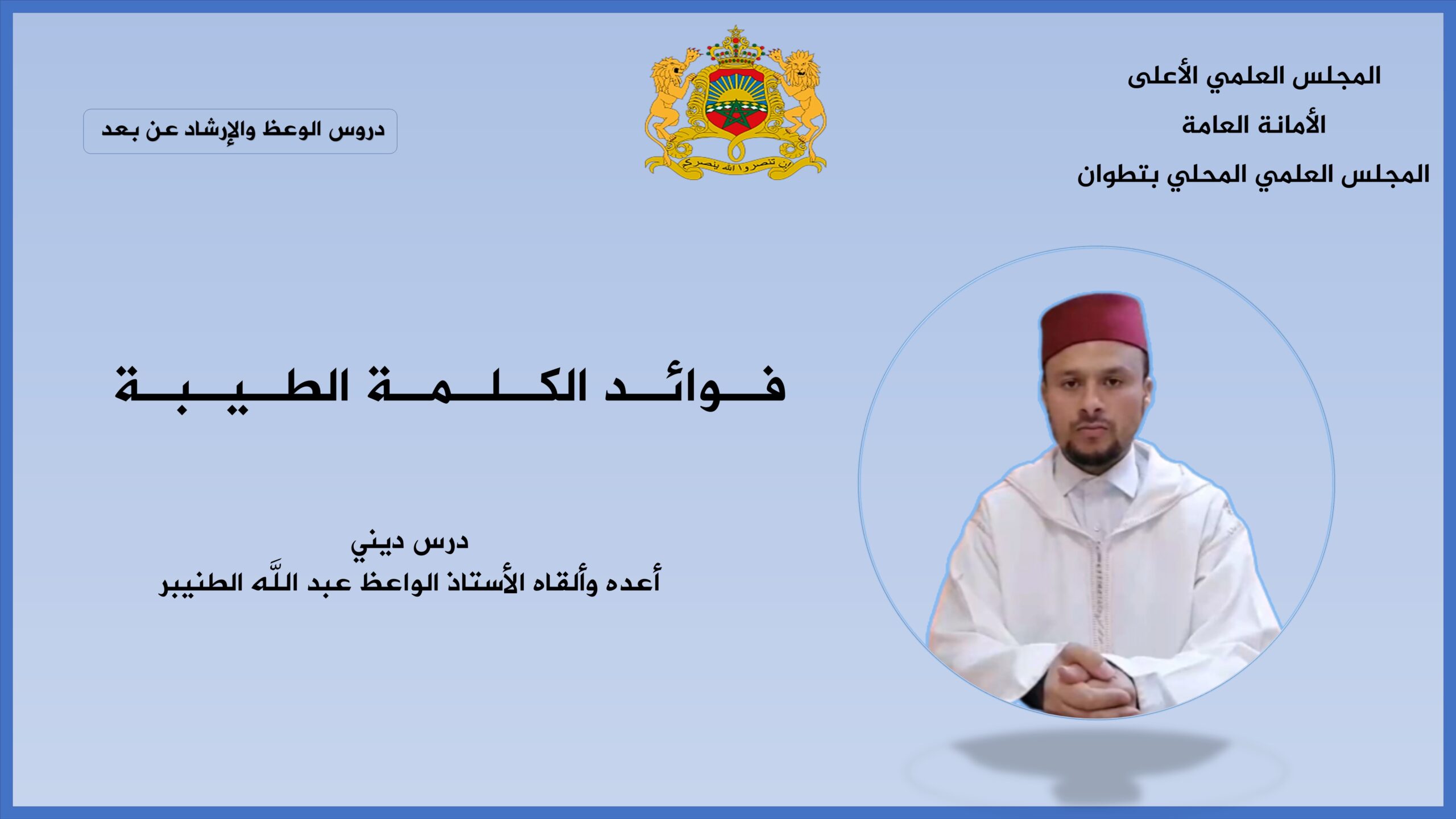 أخبار المجلس العلمي فوائد الكلمة الطيبة (درس ديني) بواسطة mohammed said في مارس 25, 2022 283 شارك بسم الله الرحمن الرحيم الحمد لله رب العالمين، والصلاة والسلام على أشرف المرسلين، سيدنا محمد النبي المصطفى الكريم، وعلى آله وصحابته أجمعين. وبعد، ففي إطار تفعيل برنامج الوعظ والإرشاد عن بعد، يقدم المجلس العلمي المحلي بتطوان درسا وعظيا بعنوان: ( فــضـل الـكـلـمـة الـطـيـبـة ) إعداد وتقديم الأستاذ الواعظ عبد الله الطـنيبر 283 شارك FacebookTwitterGoogle+ReddItWhatsAppPinterestالبريد الإلكتروني