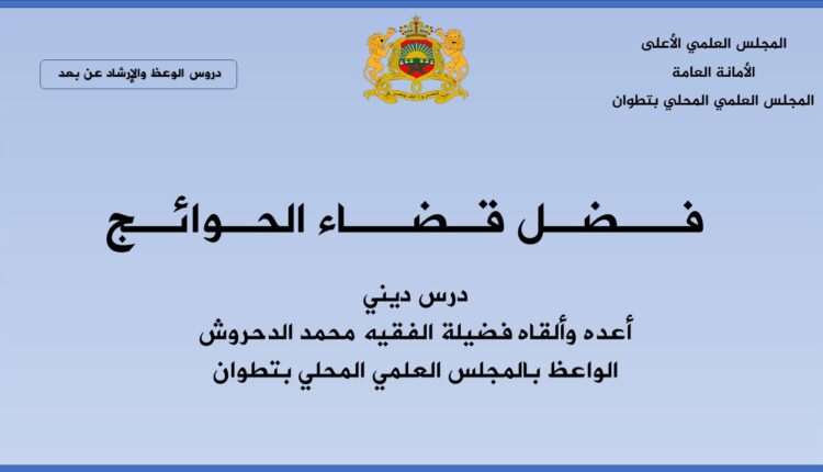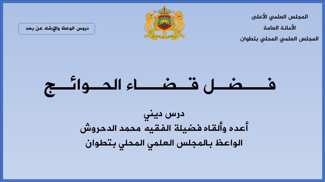 وبعد، ففي إطار تفعيل برنامج الوعظ والإرشاد عن بعد، يقدم المجلس العلمي المحلي بتطوان درسا وعظيا بعنوان: