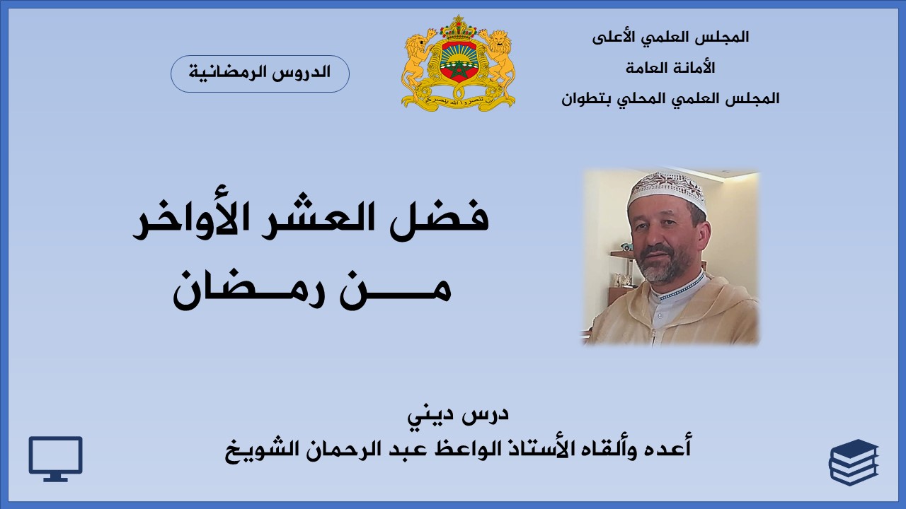 وبعد، ففي إطار برنامج الوعظ والإرشاد عن بعد، وبمناسبة شهر رمضان الأبرك، يقدم المجلس العلمي المحلي بتطوان موعظة دينية بعنوان: