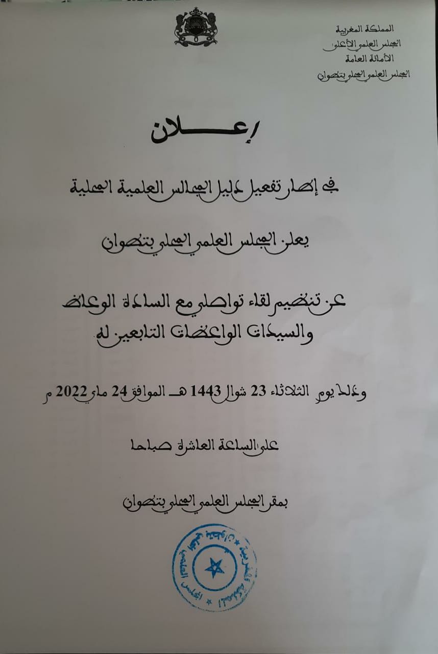 أخبار المجلس العلميأنشطة المجلس العلميلقاءات تواصلية تنظيم لقاء تواصلي مع السادة الوعاظ والسيدات الواعظات بواسطة mohammed said في مايو 18, 2022 279 شارك 279 شارك FacebookTwitterGoogle+ReddItWhatsAppPinterestالبريد الإلكتروني