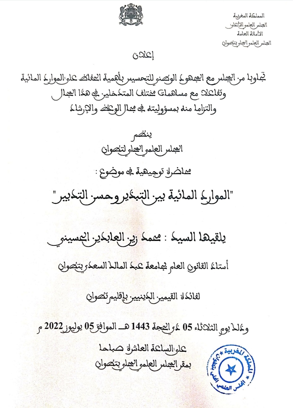 أخبار المجلس العلمي محاضرة توجيهية في أهمية الحفاظ على الموارد المائية بواسطة mohammed said في يوليو 1, 2022 279 شارك 279 شارك FacebookTwitterGoogle+ReddItWhatsAppPinterestالبريد الإلكتروني