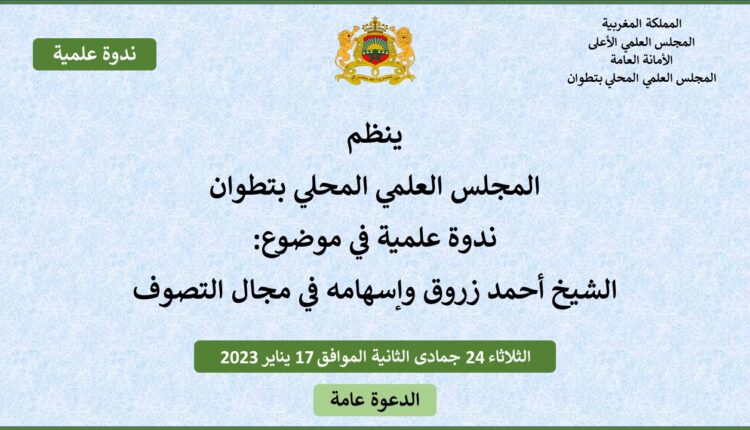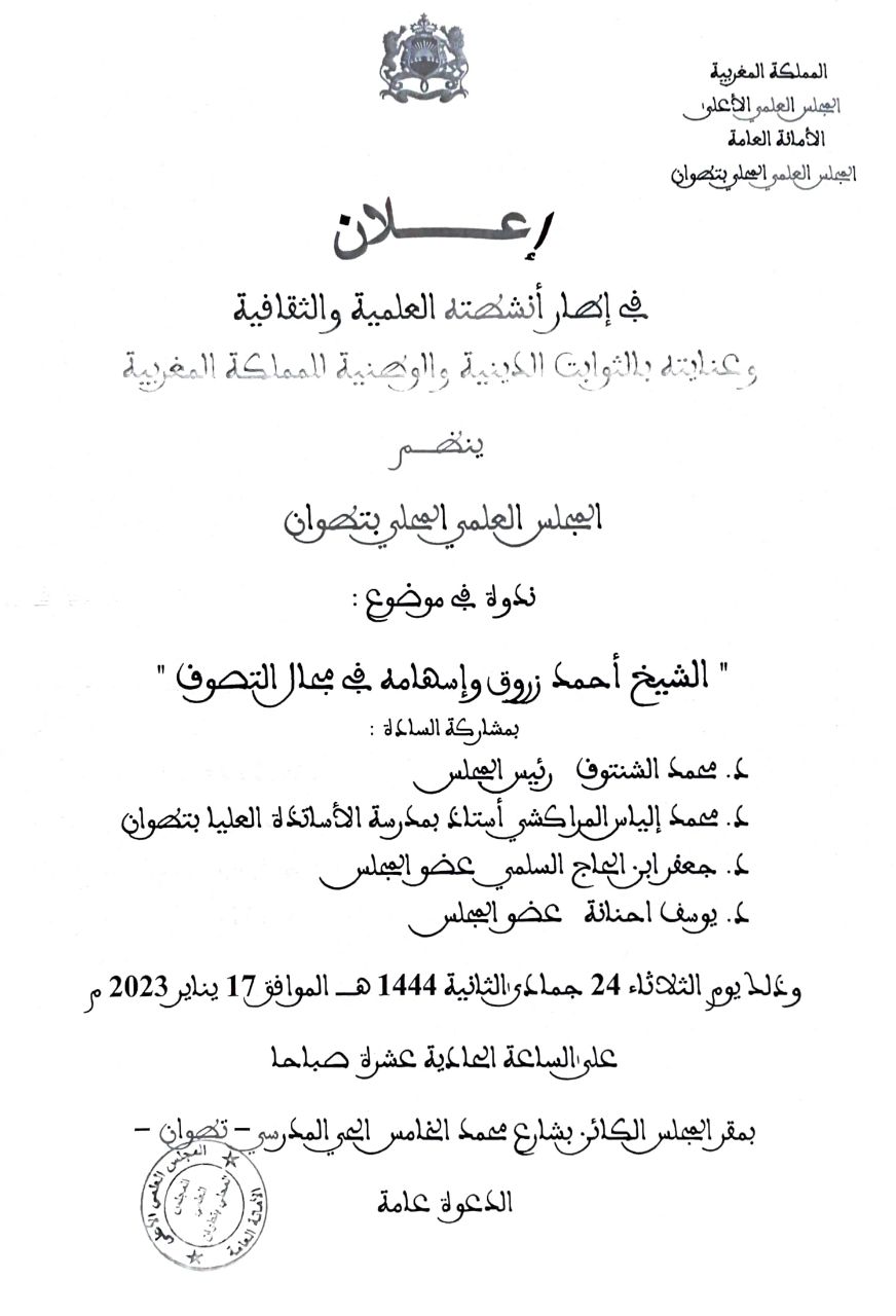 أخبار المجلس العلميأنشطة المجلس العلمي تنظيم ندوة علمية الشيخ أحمد زروق وإسهامه في مجال التصوف بواسطة mohammed said آخر تحديث يناير 12, 2023 334 شارك ندوة التصوف 334 شارك FacebookTwitterGoogle+ReddItWhatsAppPinterestالبريد الإلكتروني