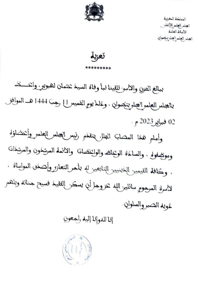 أخبار المجلس العلميأنشطة المجلس العلمي تعزية في وفاة واعظ بواسطة mohammed said في فبراير 14, 2023 0 305 شارك 0 305 شارك FacebookTwitterGoogle+ReddItWhatsAppPinterestالبريد الإلكتروني