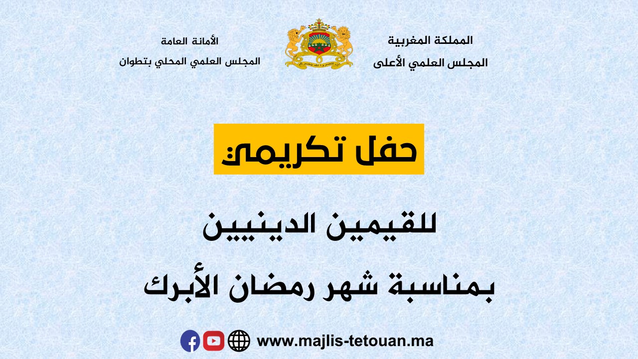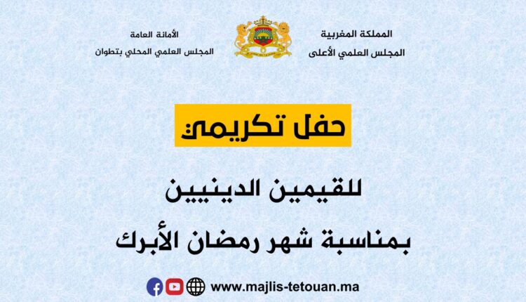 نظم المجلس العلمي المحلي بتطوان يوم الخميس 29رمضان 1444هـ موافق 20 أبريل 2023 م حفلا خصص لتكريم عدد من الائمة والمؤذنين الذين بذلوا جهدا كبيرا خاصة في شهر رمضان حيث سهروا على إمامة الناس في صلاة التراويح وتوفير السكينة والطمأنينة والجو المناسب لرواد بيوت لأداء شعائرهم الدينية في احسن حال