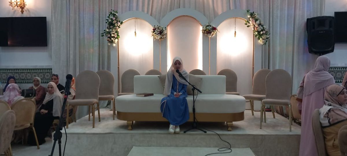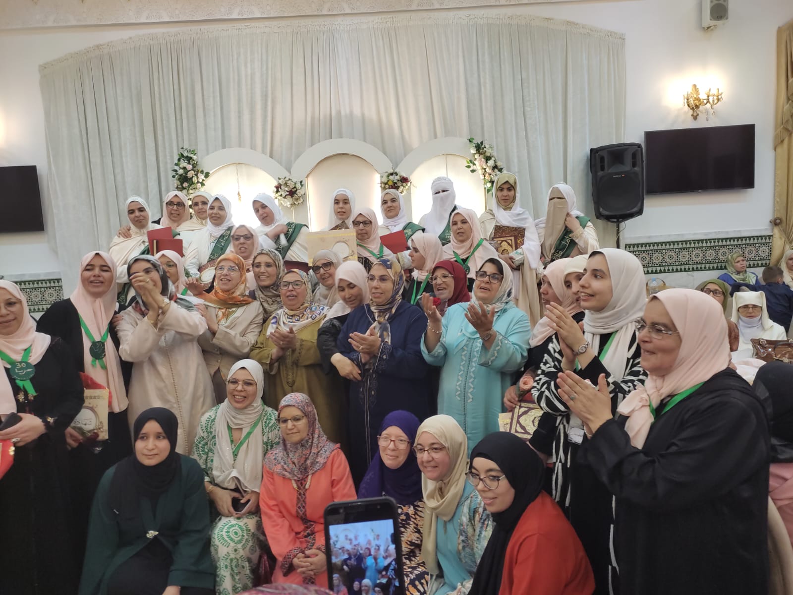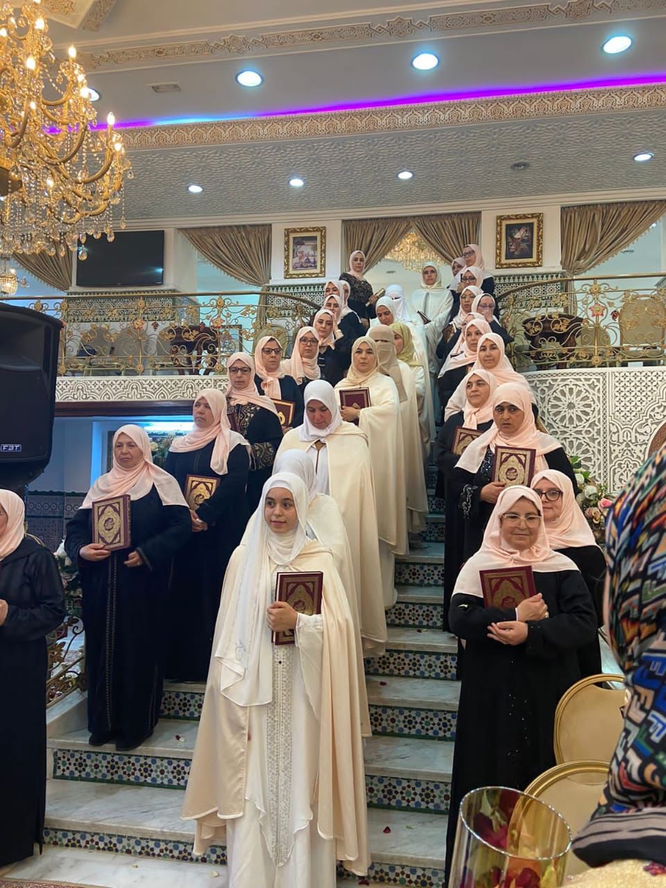 تم تنظيم حفل لتتويج الخاتمات وتكريمهن المستفيدات من برنامج تحفيظ القرآن الكريم الذي تشرف عليه المرشدتان الأستاذة الزهرة سبتاوي والأستاذة مريم شيخ المتيوي يوم الإثنين 30 ذي القعدة 1444 الموافق 19 يونيو 2023 بقاعة قصر الزهور.
