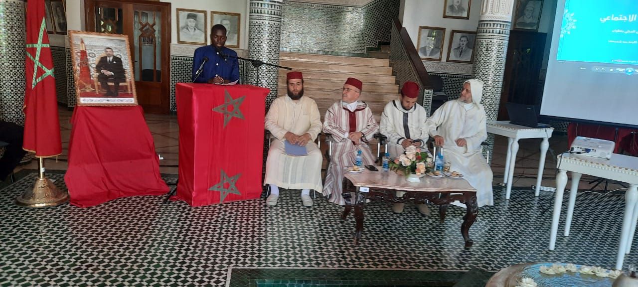 بعدها تم إعطاء الكلمة للطالب محمد الأمين جُوب من دولة السينغال الشقيقة أشاد فيها بما يُوليه أمير المؤمنين جلالة الملك محمد السادس نصره الله من أهمية بالغة للأشقاء الأفارقة وخاصة الطلبة منهم، مُنَوِّها بحفاوة الاستقبال وكرم الضيافة من الشعب المغربي المفضال، كما طَرَّزَ الطالب محمد الأمين جُوب هذا النشاط بقصيدة لامية عمودية ذات طابع عتيق ضَمَّنَهَا قيمة التعاون والتضامن مُشِيداً فيها بأعمال المغاربة في هذا المضمار.