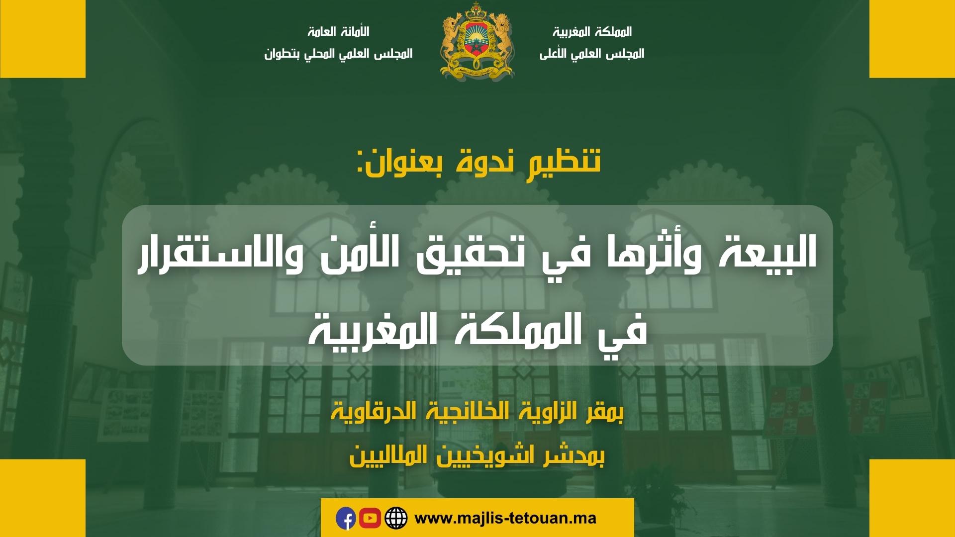 بمناسبة استعداد الشعب المغربي للاحتفال بعيد العرش المجيد، نظم المجلس العلمي المحلي بتطوان يوم الخميس 17 ذي الحجة 1444هـ موافق 06 يوليوز 2023 م ندوة في موضوع: