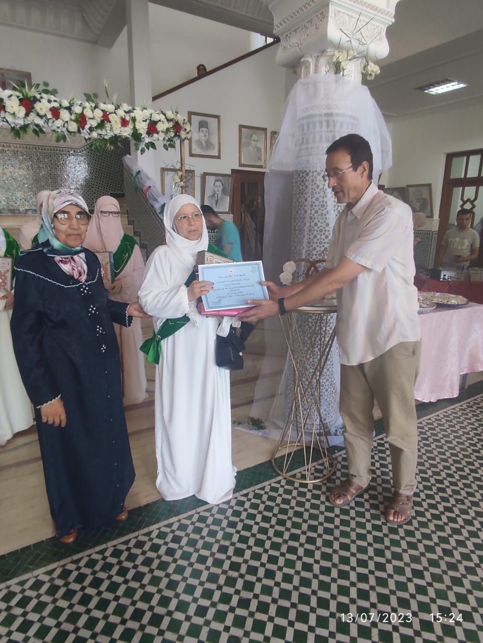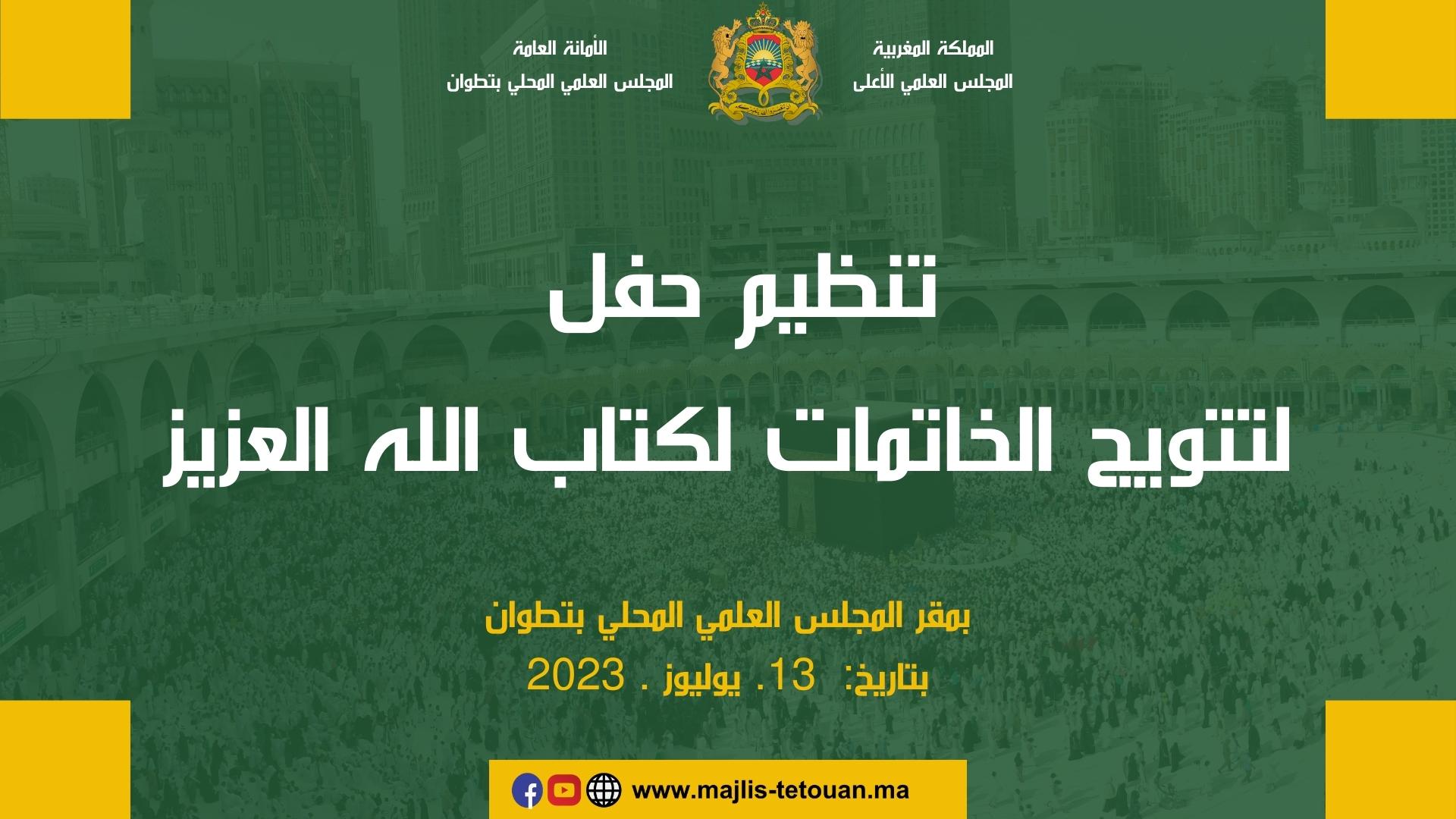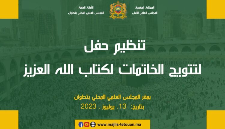 نظم المجلس العلمي المحلي بتطوان يوم الخميس 24 ذي الحجة 1444هـ موافق 13 يوليوز 2023 حفلا بمقره لتوزيع الجوائز على الخاتمات لكتاب الله اللائي يحفظن القران في المساجد التابعة للمجلس العلمي وعددها ثلاثون.