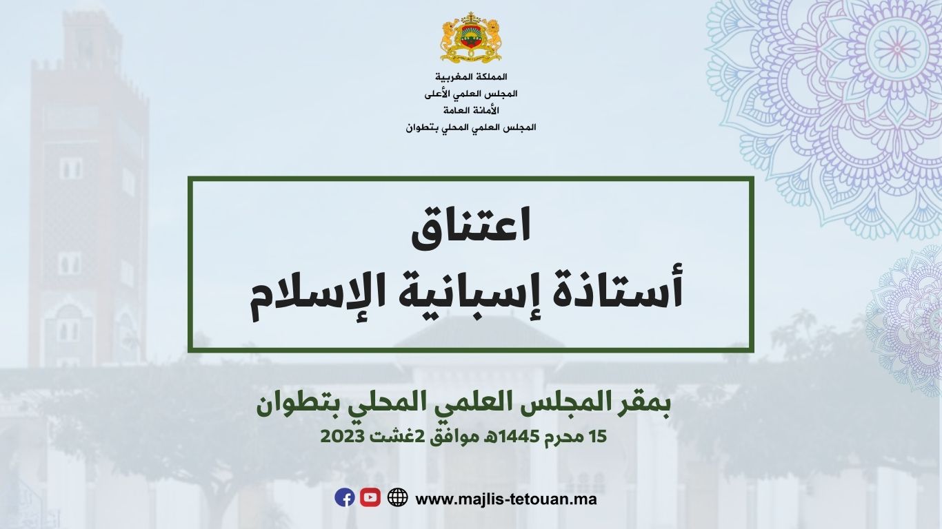 استقبل السيد رئيس المجلس العلمي المحلي بتطوان د محمد الشنتوف يوم الأربعاء 15 محرم 1445هـ موافق 02 غشت 2023 بمقر المجلس العلمي أستاذة اسبانية تسمى Gomez vicario Marina رفقة بعض صديقاتها المغربيات حيث ذكرت أنها قرأت كثيرا عن الأديان السماوية واقتنعت اخيرا بالدخول في الاسلام.