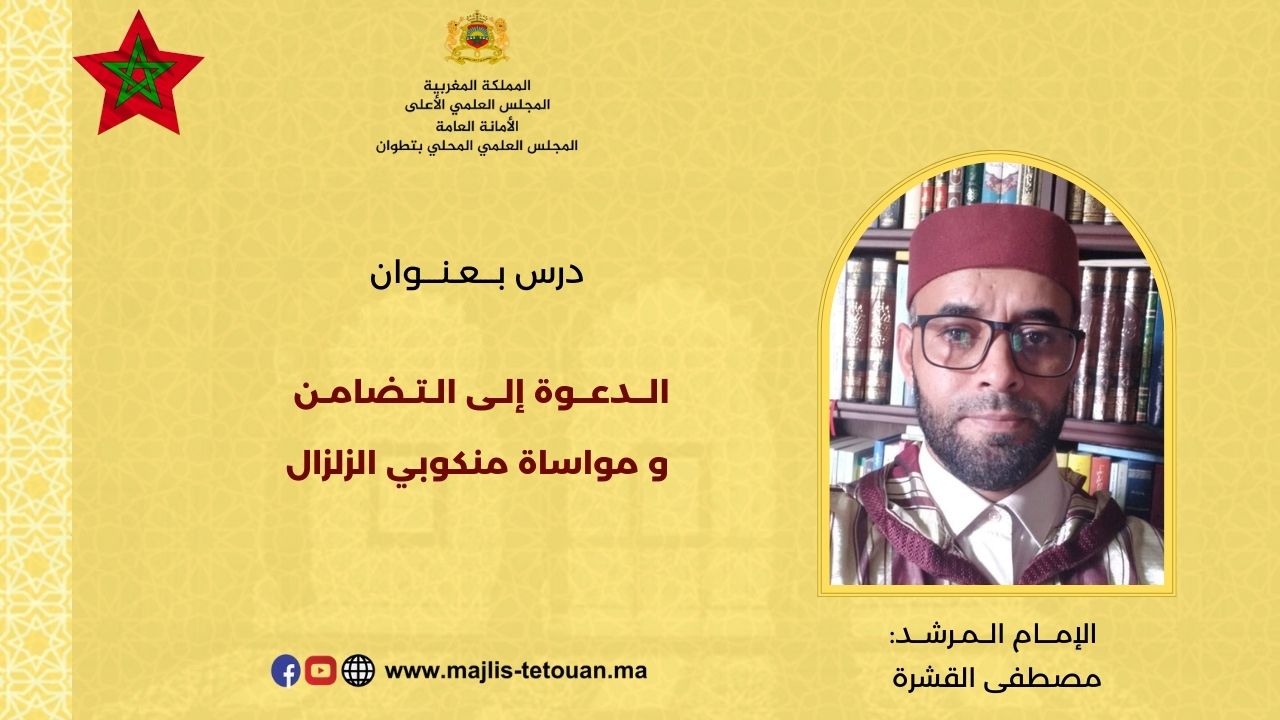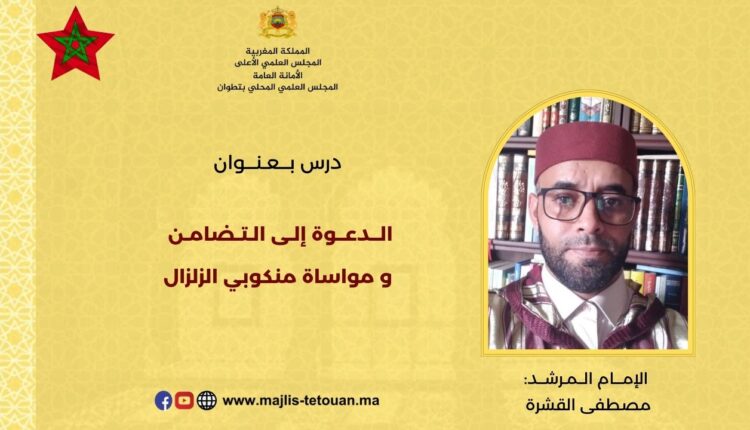 أخبار المجلس العلميأنشطة المجلس العلميدروس في الوعظ والإرشاد الدعوة إلى التضامن و مواساة منكوبي الزلزال بواسطة mohammed said في سبتمبر 16, 2023 0 366 شارك يقدم المجلس العلمي المحلي بتطوان درسا بعنوان: الدعوة إلى التضامن و مواساة منكوبي الزلزال يقدمه الإمام المرشد مصطفى القشرة 0 366 شارك FacebookTwitterGoogle+ReddItWhatsAppPinterestالبريد الإلكتروني