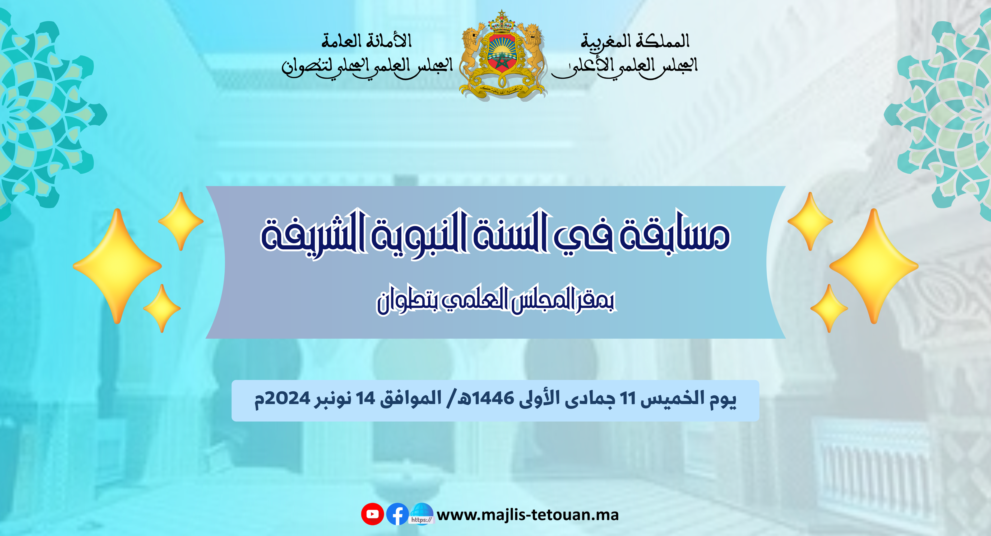 في إطار تنزيله لبرنامج أنشطته العلمية والثقافية والتكوينية وعنايته بالسنة النبوية الشريفة، نظم المجلس العلمي المحلي بتطوان، يوم الخميس 11 جمادى الأولى 1446ه/ الموافق 14 نونبر 2024م بمقره، مسابقة في حفظ الحديث النبوي الشريف لفائدة المستفيدين من برامج التحفيظ التي تؤطرها السيدات المرشدات التابعات للمجلس العلمي.