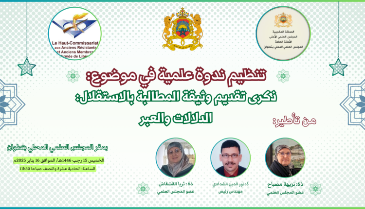 شهدت قاعة المجلس العلمي المحلي بمدينة تطوان صباح يوم الخميس 15 رجب 1446ه/ الموافق 16 يناير 2025م، ندوة علمية مميزة بمناسبة ذكرى تقديم وثيقة المطالبة بالاستقلال، أدارها باقتدار الأستاذ محمد أرارو: عضو المجلس، حيث افتتحت بتلاوة آيات بينات من الذكر الحكيم، إيذانًا بانطلاق فعاليات هذا اللقاء الذي جمع بين عبق التاريخ ووهج الفكر.