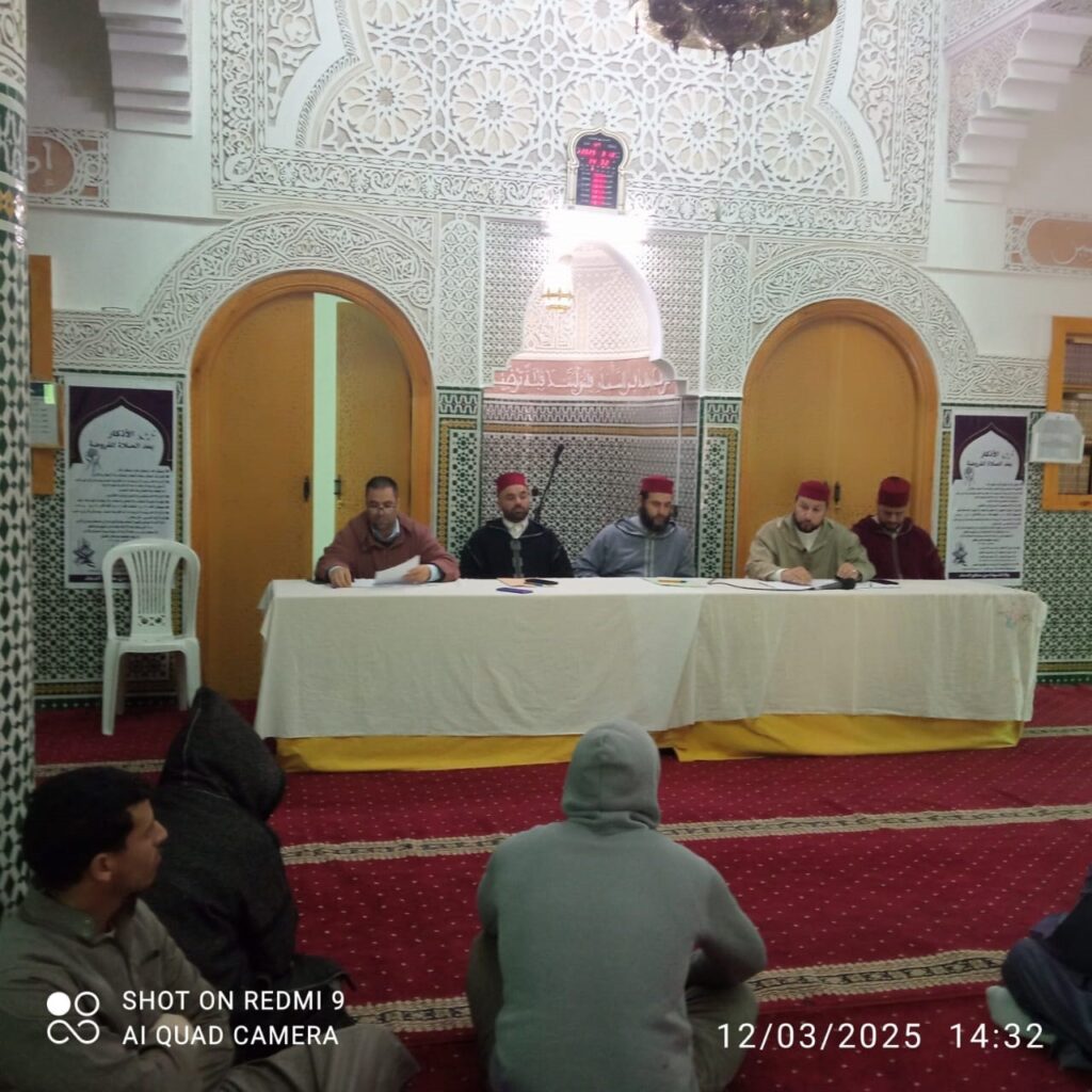 الندوة العاشرة: يوم، الأربعاء 11 رمضان 1446ه/ موافق12 مارس 2025م، بمسجد أي ذر الغفاري مقاطعة الحي المدرسي، قبل صلاة العصر، أطرها السادة الأئمة المرشدون: ذ: محمد الصبيحي، ذ: عبد السلام الخشين، ذ: سفيان عليطو.