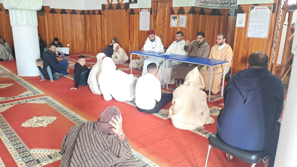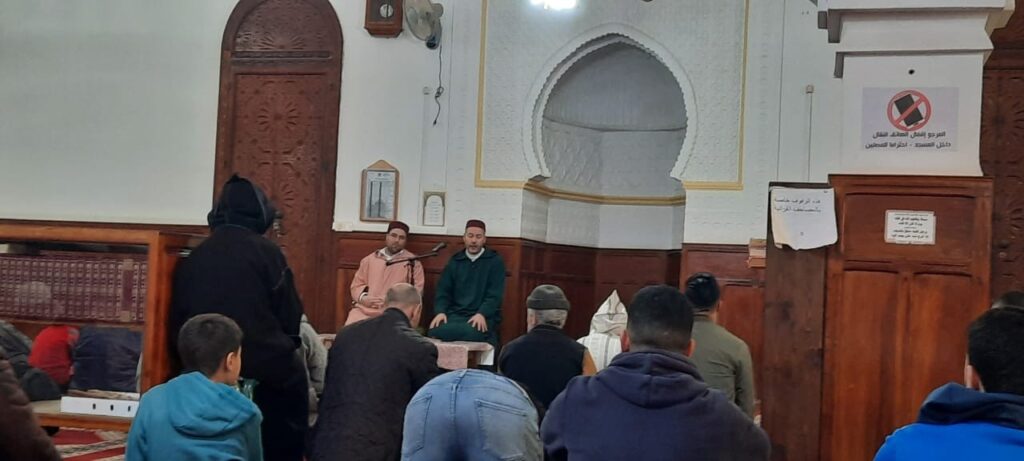 الندوة 24: يوم الأربعاء 18 رمضـان 1446هـ. موافـــق 19 مـارس 2025م. بمسجد (الإمام مالك) مقاطعة: سيدي طلحة قبل صلاة العصر. وقد أطرها السادة الأئمة المرشدون: – ذ. عبد السلام العباس – ذ. رشيد أيت أحمد.