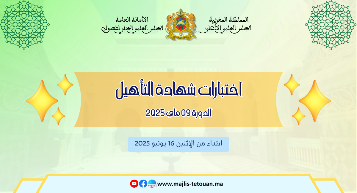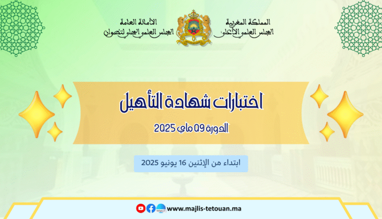 أعلنت المندوبية الجهوية للشؤون الإسلامية والمجلس العلمي الجهوي لجهة طنجة تطوان الحسيمة أنه سيتم ابتداء من يوم الاثنين 16 يونيو 2025 إجراء اختبارات شهادة التأهيل لفائدة المترشحين المستوفين للشروط المبينة أسماؤهم في اللوائح التالية لشغل المناصب الشاغرة في مهام الإمامة والأذان والخطابة (مركبة أو منفصلة) ، عن الدورة رقم 09 (مــــــاي) من سنة 2025 والتي سيشرف عليها المجلس العلمي الجهوي لجهة طنجة تطوان الحسيمة؛