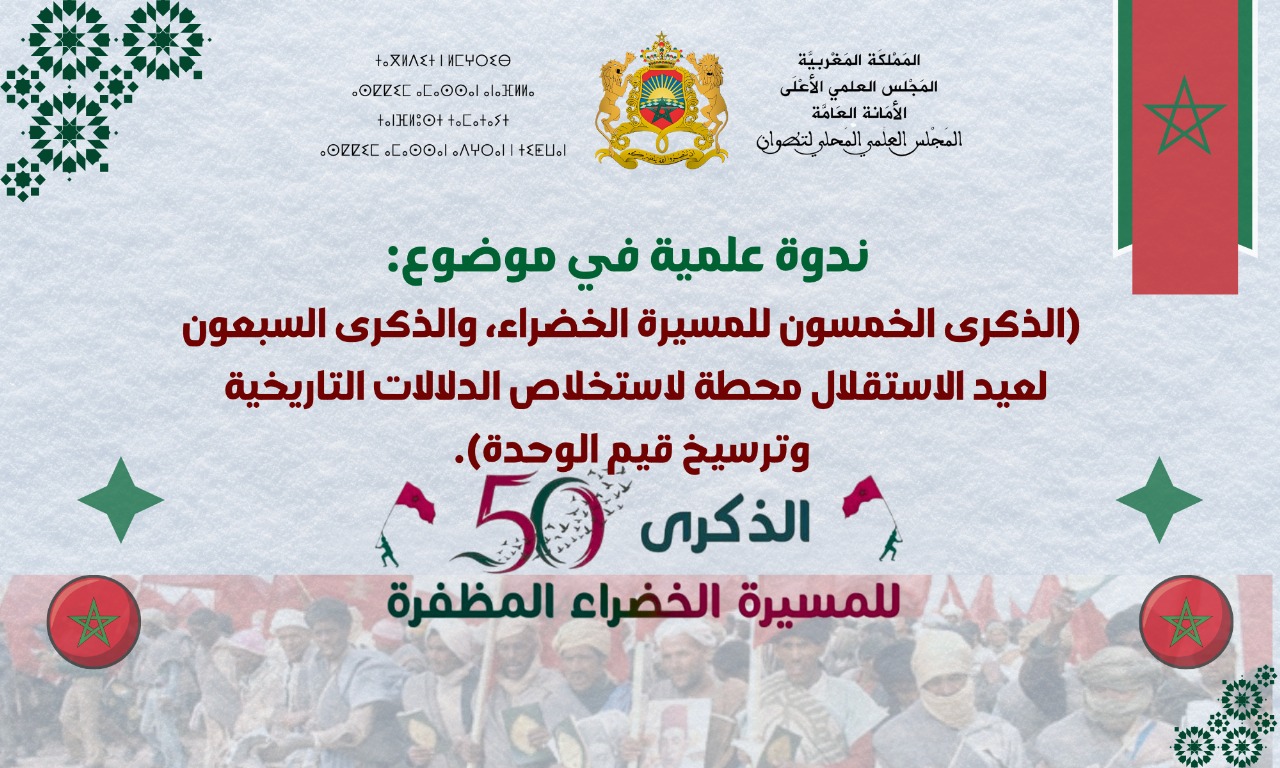 في إطار تنزيله لبرنامج أنشطته الدينية والعلمية والثقافية والتكوينية، وفي سياق عنايته بالمناسبات الدينية والوطنية، واحتفاء بالذكرى الخمسين للمسيرة الخضراء المظفرة، والذكرى السبعين لعيد الاستقلال المجيد،