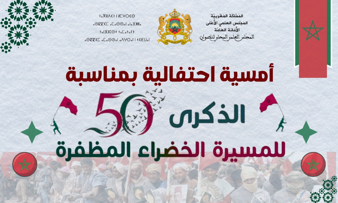 في إطار تنزيله لبرنامج أنشطته الدينية والعلمية والثقافية والتكوينية، وفي سياق عنايته بالمناسبات الدينية والوطنية، واحتفاء بالذكرى الخمسين للمسيرة الخضراء المظفرة، نظم المجلس العلمي المحلي بتطوان، يوم الجمعة 15 جمادى الأولى 1447ه/ موافق 07 نونبر 2025م، أمسية دينية تحت شعار: (المسيرة الخضراء رمز الوحدة والبناء)،