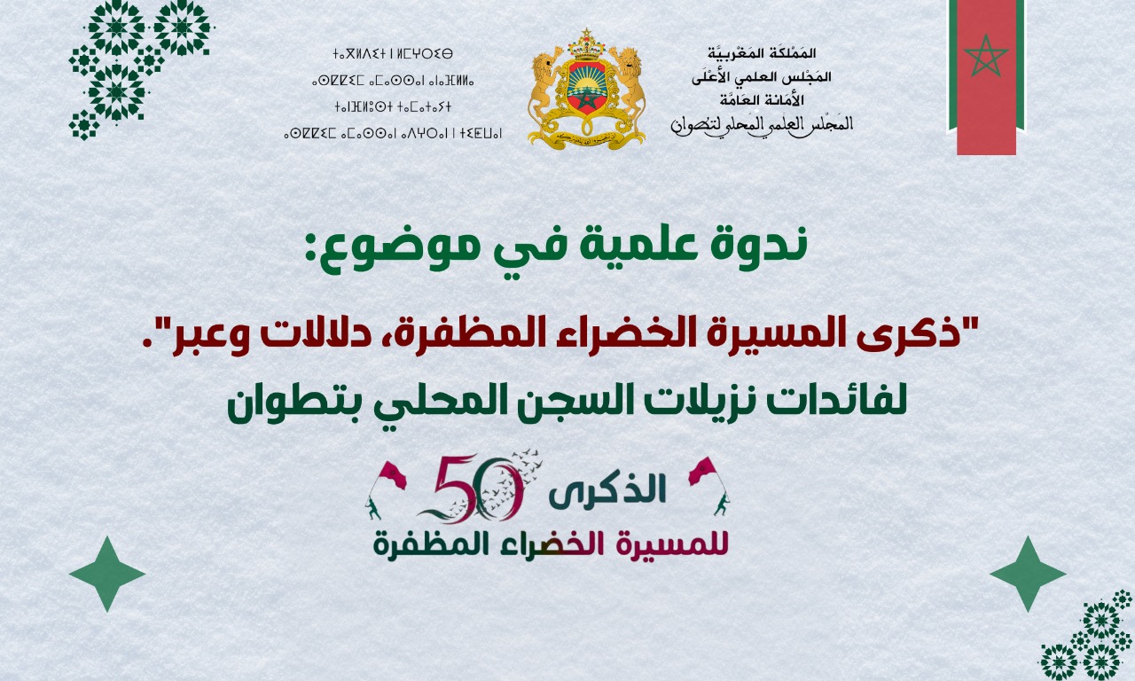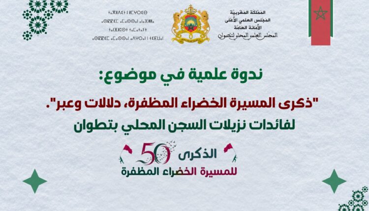 في إطار تنزيله لبرنامج أنشطته الدينية والعلمية والثقافية والتكوينية وفي سياق عنايته بالمناسبات الدينية والوطنية واحتفاء بالذكرى الخمسين للمسيرة الخضراء المظفرة، نظمت خلية شؤون المرأة وقضايا الأسرة التابعة للمجلس العلمي المحلي بتطوان، يوم الأربعاء 20 جمادى الأولى 1447هـ/ الموافق 12 نونبر 2025م، ندوة علمية لفائدات نزيلات السجن المحلي بتطوان في موضوع: “ذكرى المسيرة الخضراء المظفرة، دلالات وعبر”.
