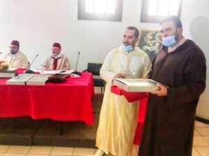 نظم المجلسان العلميان المحليان لتطوان والمضيق/الفنيدق يوم الثلاثاء 19 ربيع الأول 1443 هـ 26 أكتوبر 2021 م بمقر المجلس العلمي المحلي بتطوان، لقاء تواصليا تكوينيا لفائدة محفظي ومحفظات القرآن الكريم، تضمن ثلاث جلسات. الجلسة الافتتاحية: حيث افتتحت بتلاوة آيات بينات من الذكر الحكيم. تلتها كلمة الافتتاح للدكتور توفيق الغلبزوري رئيس المجلس العلمي المحلي للمضيق/الفنيدق، ثم كلمة ترحيبية لفضيلة الدكتور محمد الشنتوف رئيس المجلس العلمي المحلي لتطوان. كما تم عرض نشاط المجلسين في ميدان التحفيظ قدمته المرشدة ليلى البرودي عن تطوان ومريم بلحاج عن المضيق/الفنيدق. وقد انتهت هذه الجلسة بفقرة تكريم لبعض المحفظين والمحفظات، وذلك بتسليمهم دروعا وهدايا وشواهد تقديرية.
