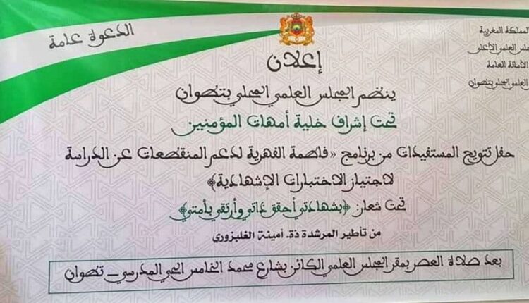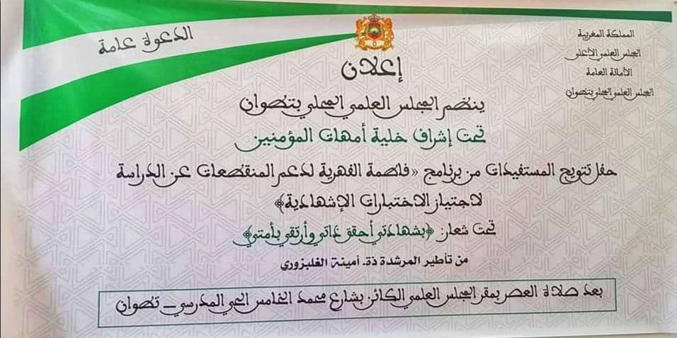 وقد أقام المجلس العلمي المحلي بتطوان، حفلا بمقره يوم الخميس 4 نوفمبر 2021 من أجل تتويج الخريجات.